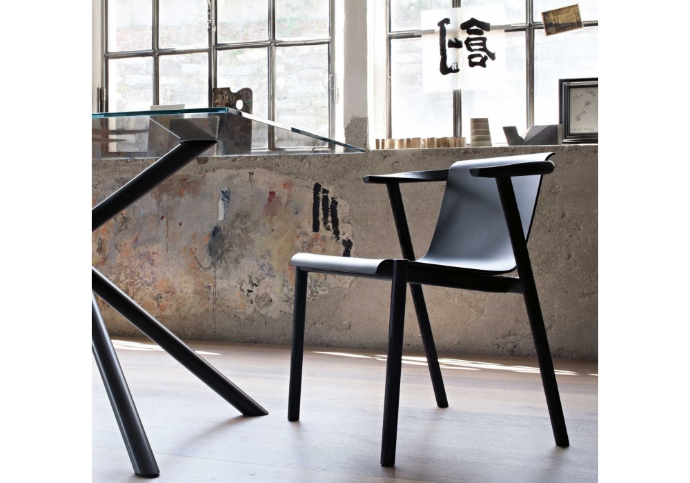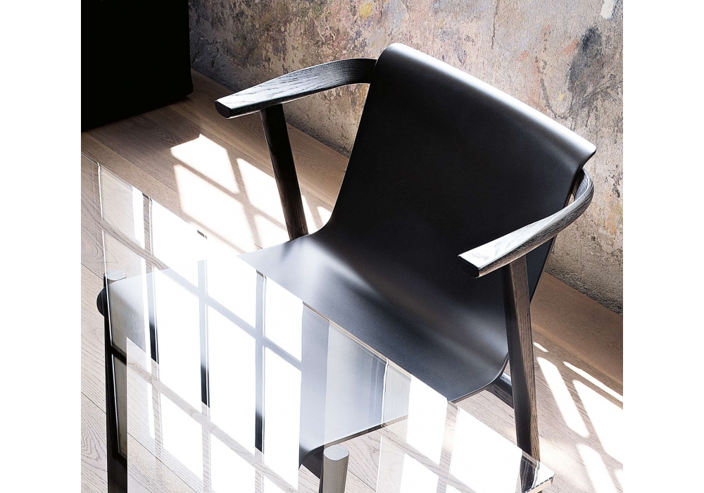 Bai Lu è la sedia firmata da Neri & Hu per Lema. Struttura in frassino laccato nero a poro aperto e scocca in LCT.