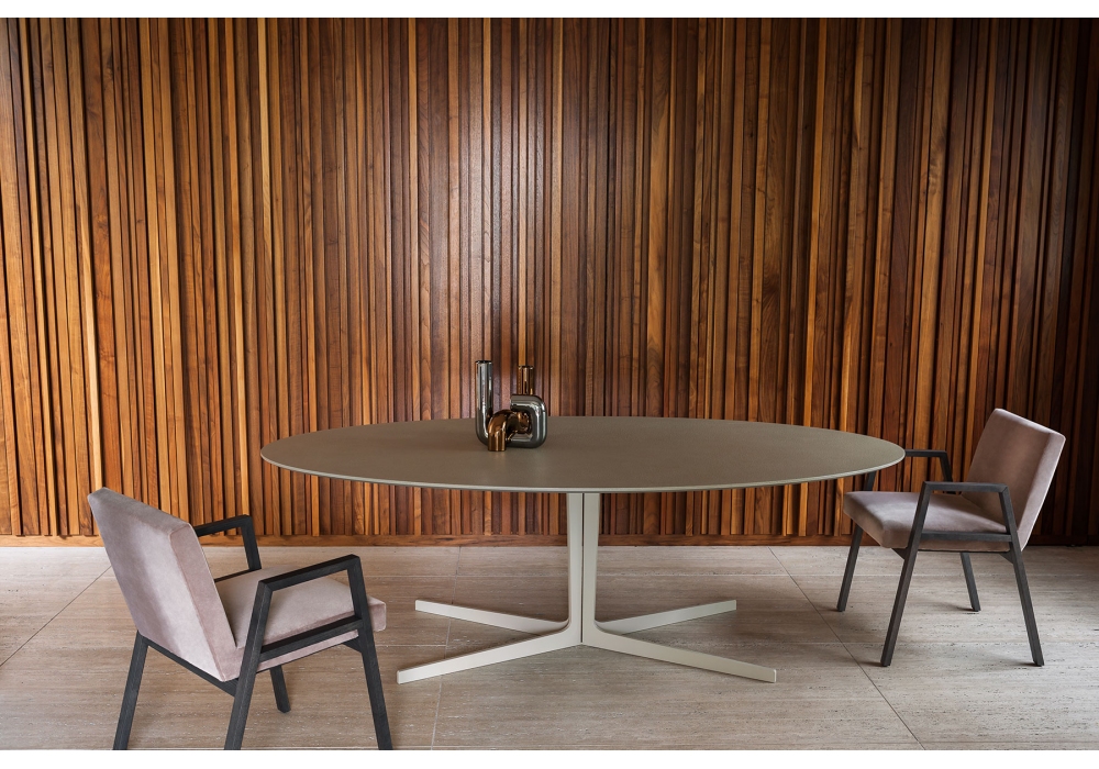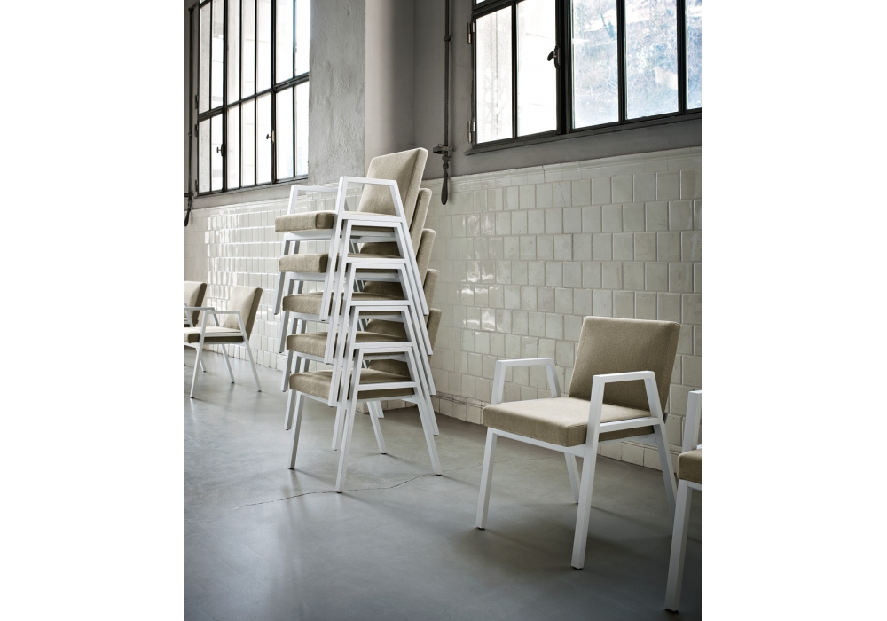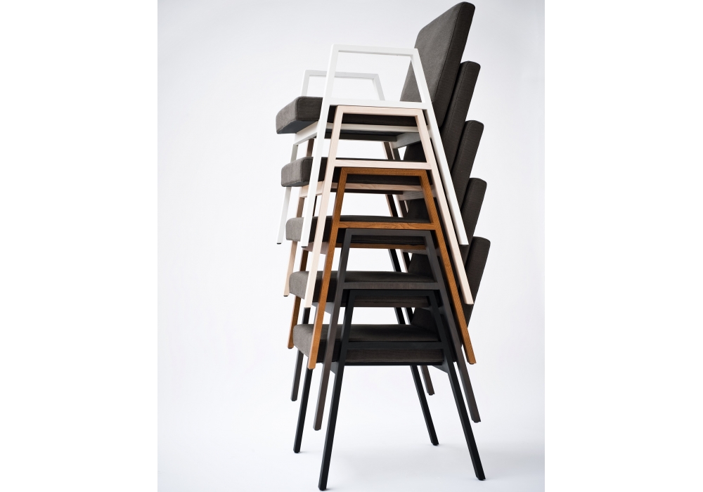 Babela firmato da Achille & Pier Giacomo Castiglioni per Tacchini è una sedia che coniuga confort e impilabilità. Struttura in frassino verniciato naturale, noce, bianco, nero o grigio. Rivestimento disponibile in tessuto o pelle.