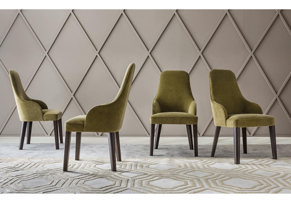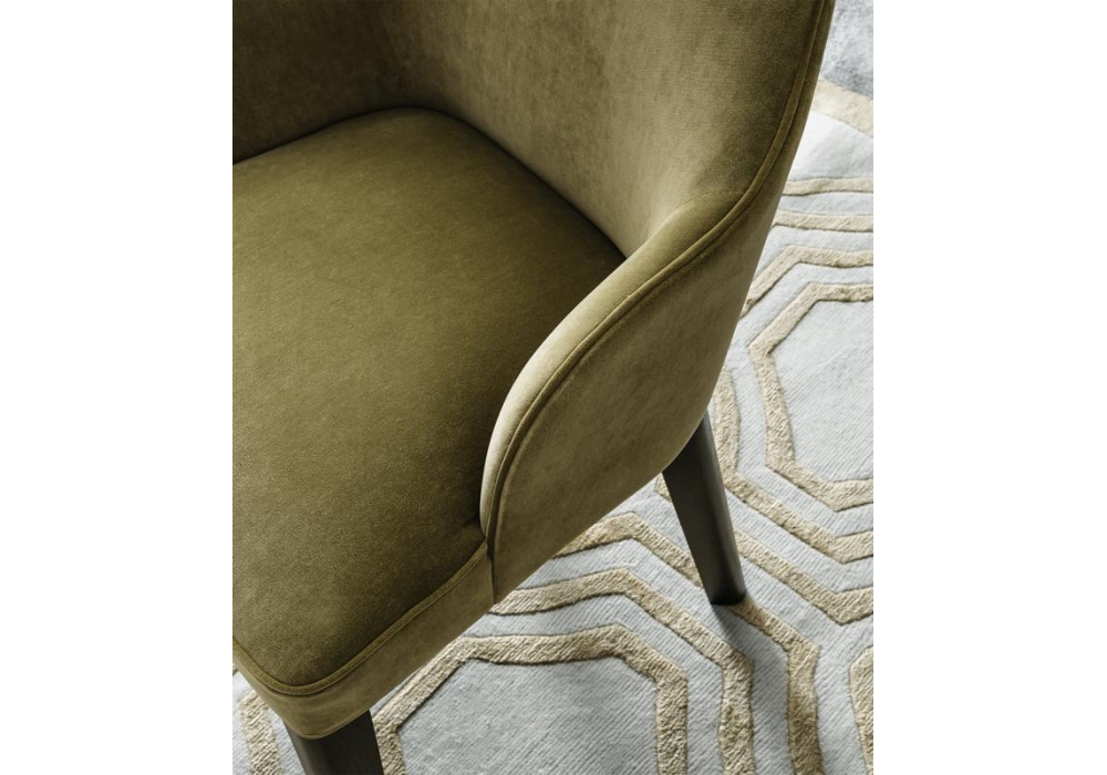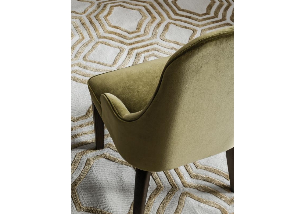 Diana firmata da Castello Lagravinese Studio per Casamilano è una sedia con struttura in massello di faggio e compensato curvato, imbottitura in poliuretano espanso e gambe in massello di rovere tinto ebano o rivestite. Rivestimento non sfoderabile in differenti tessuti o pelli.