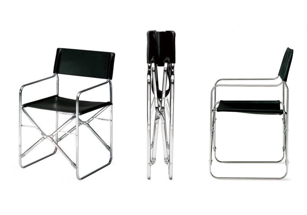 2120 April firmata da Gae Aulenti per Zanotta è una sedia con struttura in acciaio inox 18/8. Snodi in lega di alluminio. Rivestimento sfoderabile in tessuto o in cuoio 95.