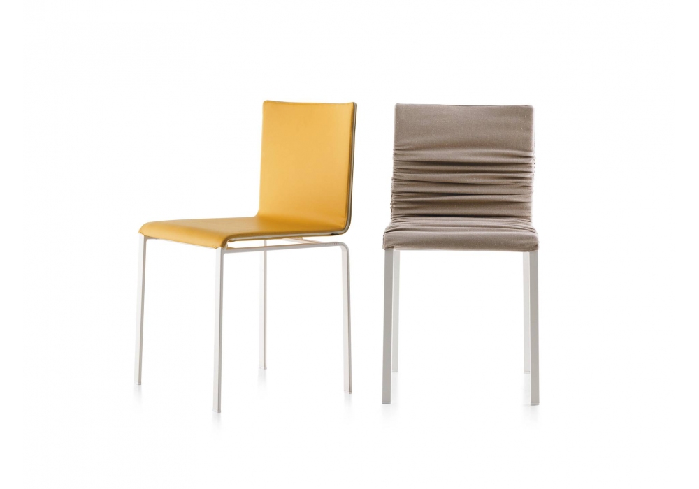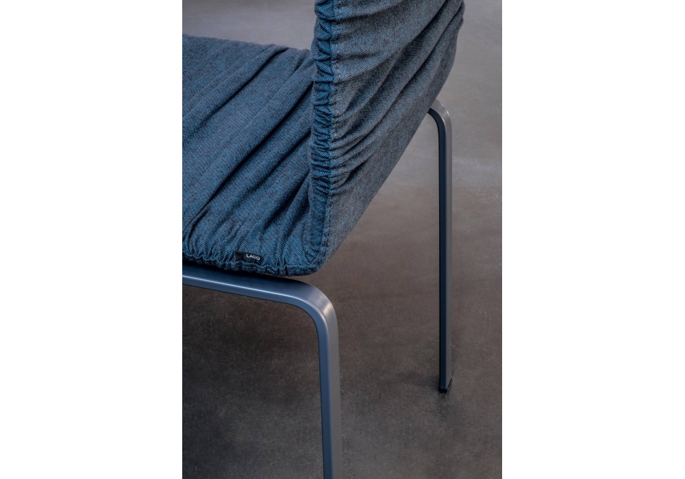 Steps firmata da Luca De Bona per Lago è una sedia per interni. Gambe in tubolare metallico verniciato con polveri epossidiche. Scocca in multistrato di legno curvato, rivestito in poliuretano. Rivestimento arricciato o liscio disponibile in tessuto o pelle.