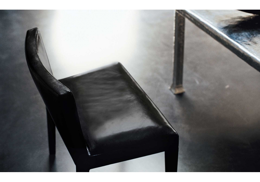 Oslo firmata da Paola Navone per Baxter è una sedia con struttura e base in frassino tinto wengé con schienale in tamburato. Imbottitura in poliuretano espanso a densità differenziata. Molleggio a nastri elastici intrecciati di caucciù rivestito. Rivestimento con taglio al vivo solo nella versione con le gambe in pelle. Disponibile in due dimensioni.