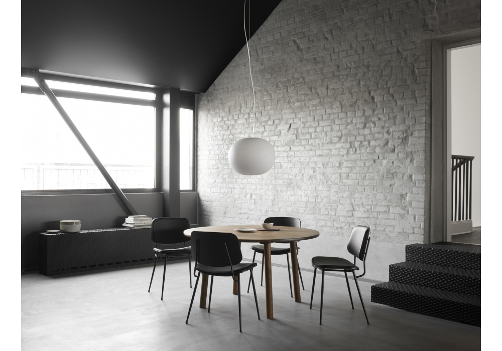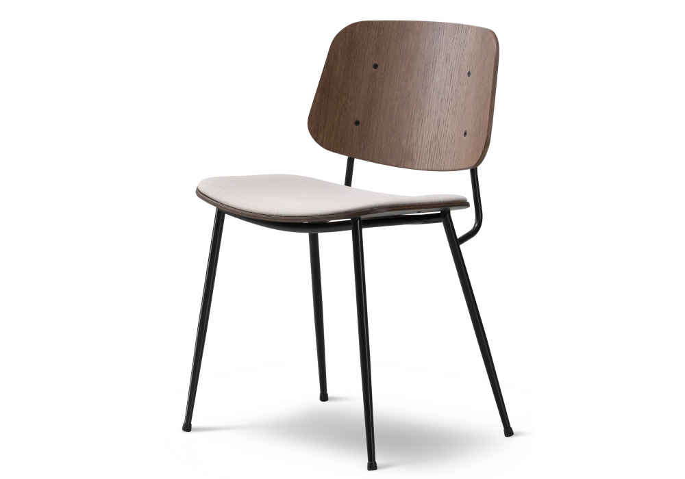 Søborg firmata da Børge Mogensen per Fredericia è una sedia con base in metallo (acciaio) verniciato nero o cromato. Sedile e schienale intercambiabili in compensato montati con viti in metallo nero. Rivestimento seduta in differenti tessuti o pelli.