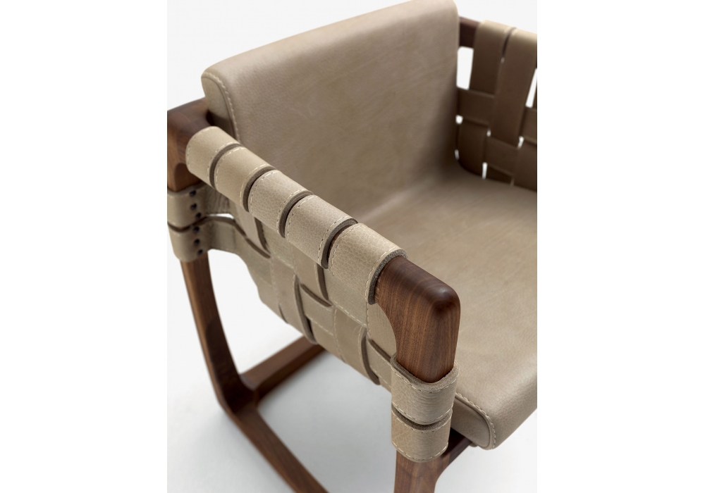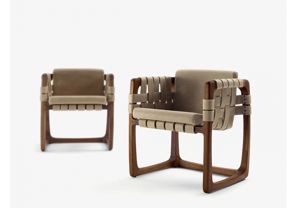 Bungalow firmata da Jamie Durie per Riva 1920 è una sedia imbottita con struttura realizzata in legno massello completamente tornita, assemblata e levigata a mano. Un intreccio di stringhe in pelle o tessuto caratterizza la seduta, che si distingue per il grande comfort.