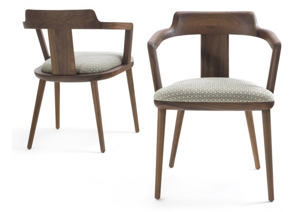 Tilly firmata da Carlo Ballabio per Porada è una sedia con braccioli e struttura in massello di noce canaletta disponibile in diverse finiture. Seduta imbottita con rivestimento in pelle o tessuto.
