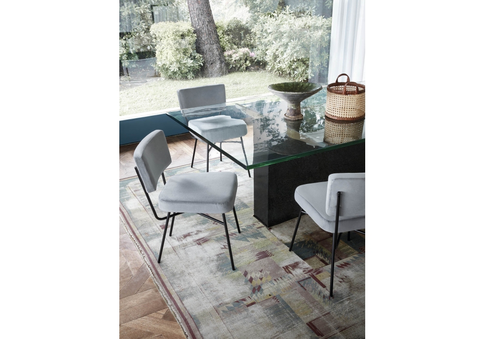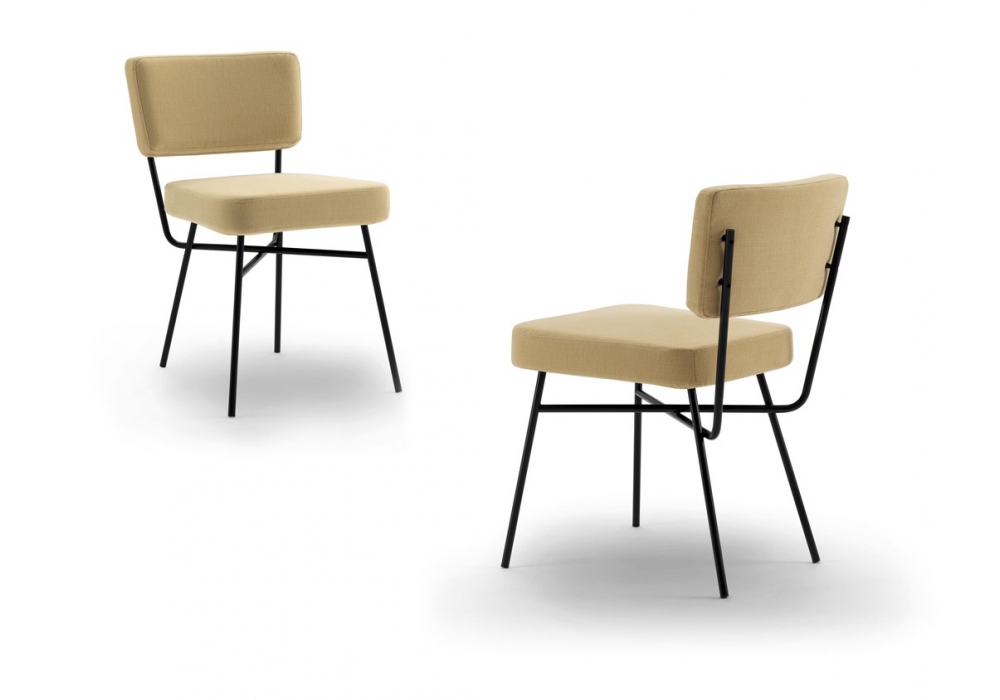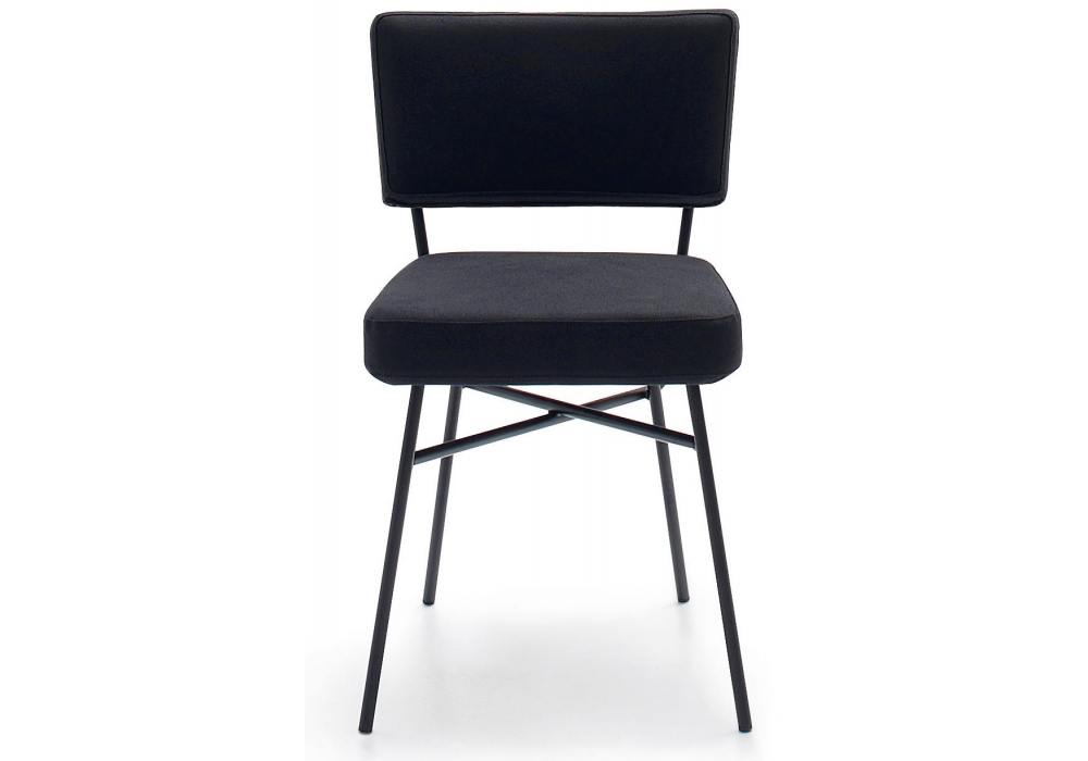 Elettra firmata da B.B.P.R per Arflex è una sedia con struttura in metallo laccato nero. Rivestimento in tessuto sfoderabile o in pelle non sfoderabile.