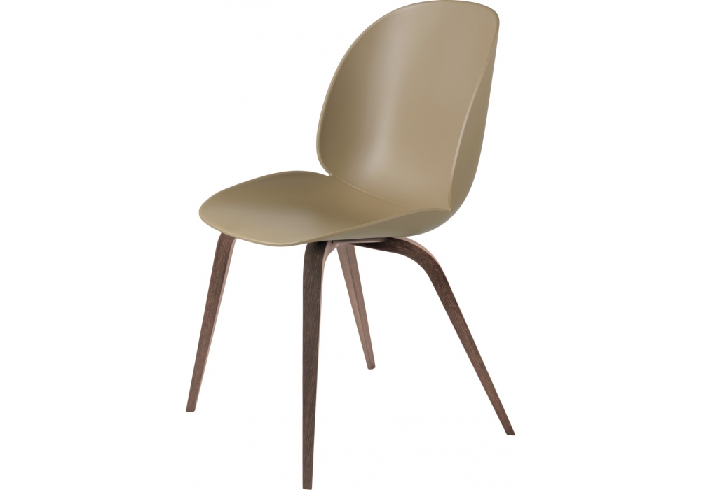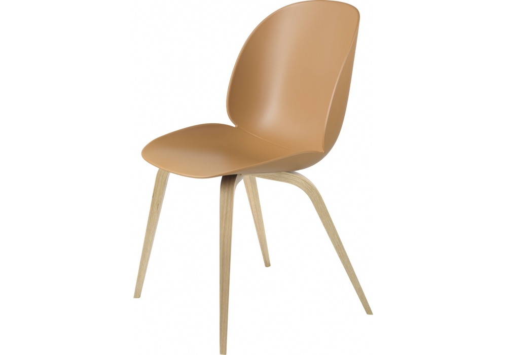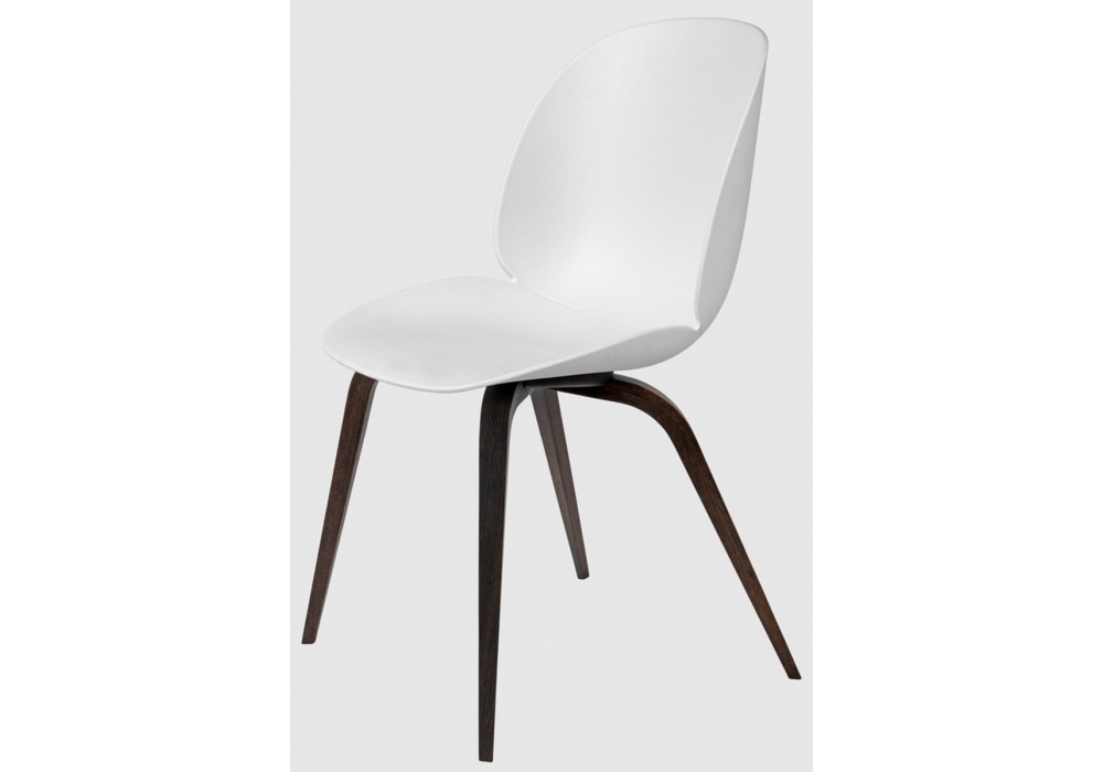 Beetle Dining firmata da GamFratesi per Gubi è una sedia con base in legno e scocca in polipropilene disponibile in diverse finiture.