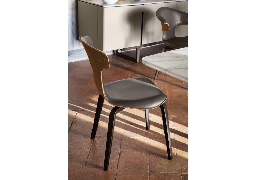 Montera, disegnata da Roberto Lazzeroni per Poltrona Frau, è una sedia da pranzo con scocca in poliuretano rigido stampato, imbottitura in poliuretano espanso e rivestimento in Pelle Frau®. Disponibile in due versioni: scocca in pelle con rivestimento interno in pelle o completamente in pelle, monocolore o bicolore. La pelle e il cuoio con i bordi tagliati a vivo sono cuciti insieme con filo a contrasto. La versione completamente in pelle presenta cuciture tono su tono. Gambe in frassino massiccio o in acciaio.