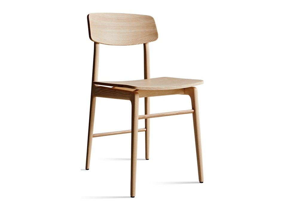 Woody firmata da Francesco Meda per Molteni&C è una sedia con struttura in frassino, seduta e schienale in multistrato impiallacciato a doghe e piedini plastici con puntali.