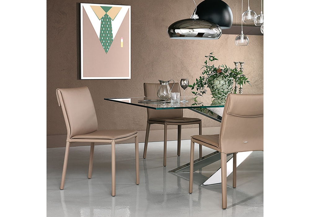Isabel firmata da Paolo Cattelan per Cattelan Italia è una sedia interamente rivestita in diverse finiture di tessuto e pelle. Disponibile in quattro diversi modelli, con o senza braccioli.