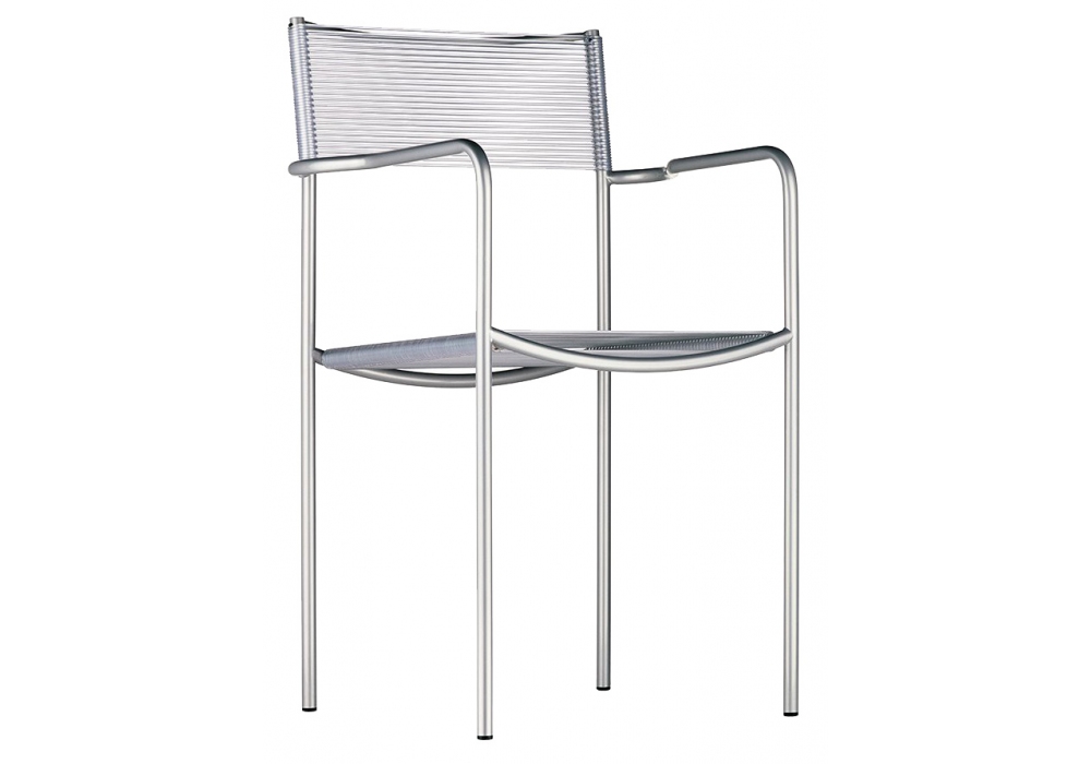 Spaghetti Armrest 131 firmata da Giandomenico Belotti per Alias è una sedia con braccioli realizzata con struttura in acciaio inox satinato o cromato, seduta e schienale in PVC. Disponibile in diverse finiture.