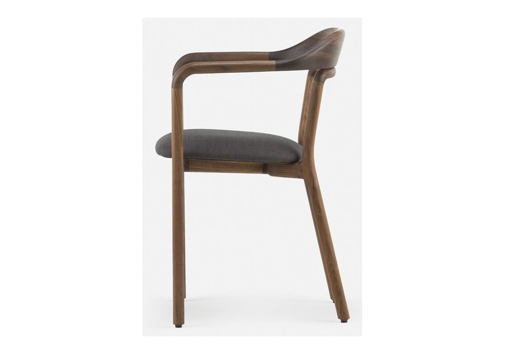 Duet firmata da Neri & Hu per De La Espada è una sedia da pranzo con seduta imbottita e rivestita in tessuto o pelle e struttura in legno disponibile in diverse finiture.