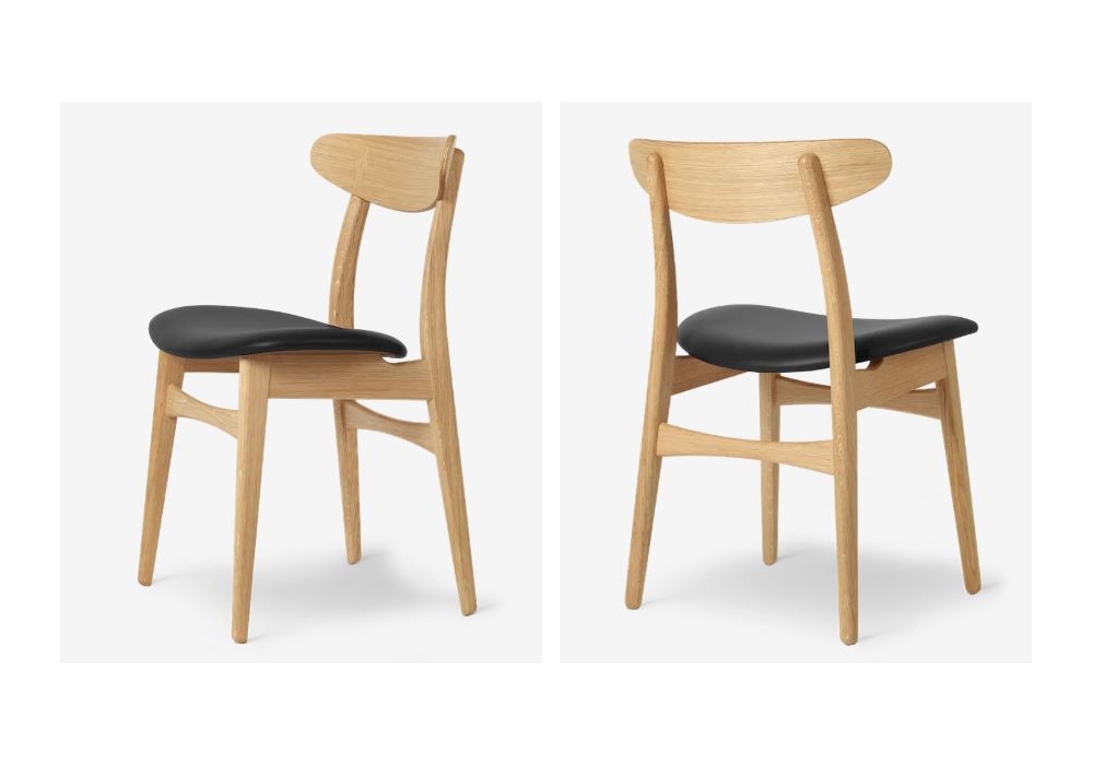 CH30P firmata da Hans J. Wegner per Carl Hansen & Søn è una sedia con struttura in legno massello disponibile in differenti finiture. Sedile in schiuma con rivestimento in tessuto o pelle. Rovere/noce è una versione combinata, con struttura in rovere e schienale in noce. Lo schienale è decorato con intarsi nella stessa finitura della struttura. Nella versione rovere/noce l'intarsio è color rovere.