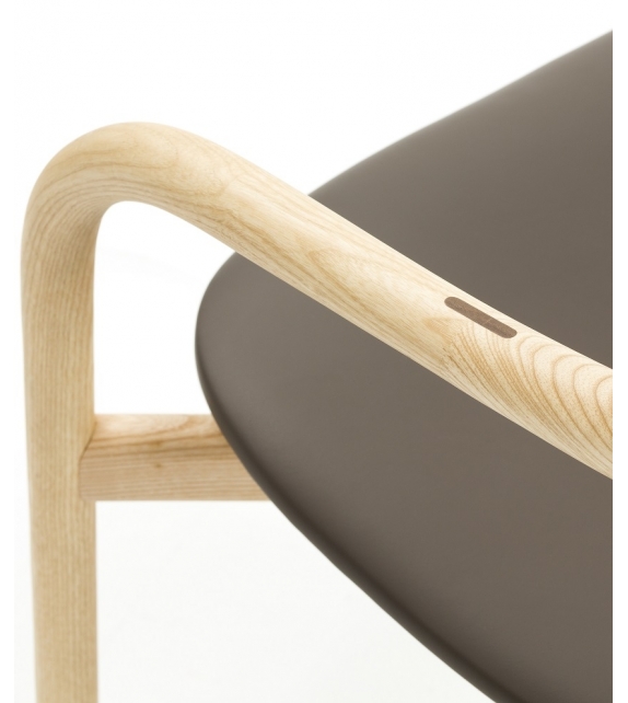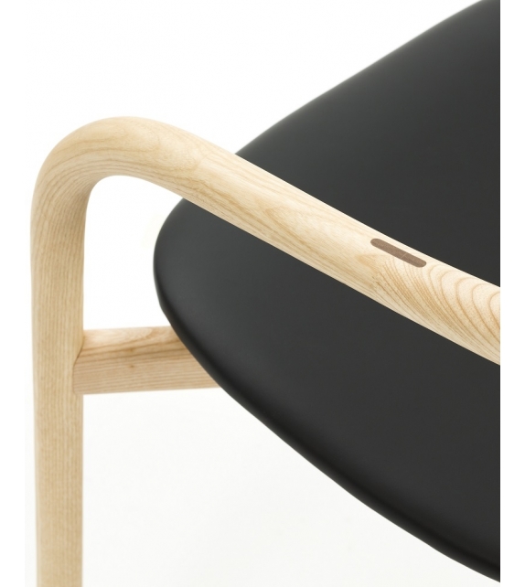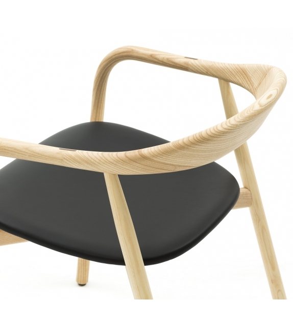 Autumn firmata da Ichiro Iwasaki per Discipline è una sedia con struttura in frassino con finitura naturale, tinto nero o noce Canaletto. Seduta imbottita con rivestimento in tessuto o pelle.