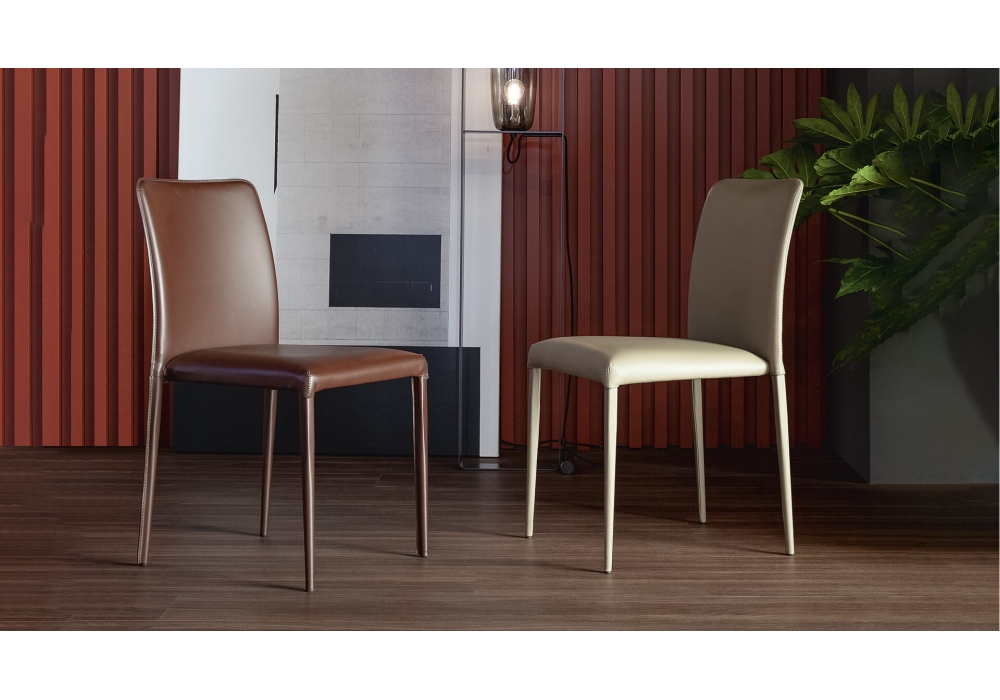 Deli firmata da Bonaldo è una sedia imbottita con rivestimento in pelle o eco-pelle. Gambe in metallo verniciato, disponibile in diverse finiture o completamente rivestite.