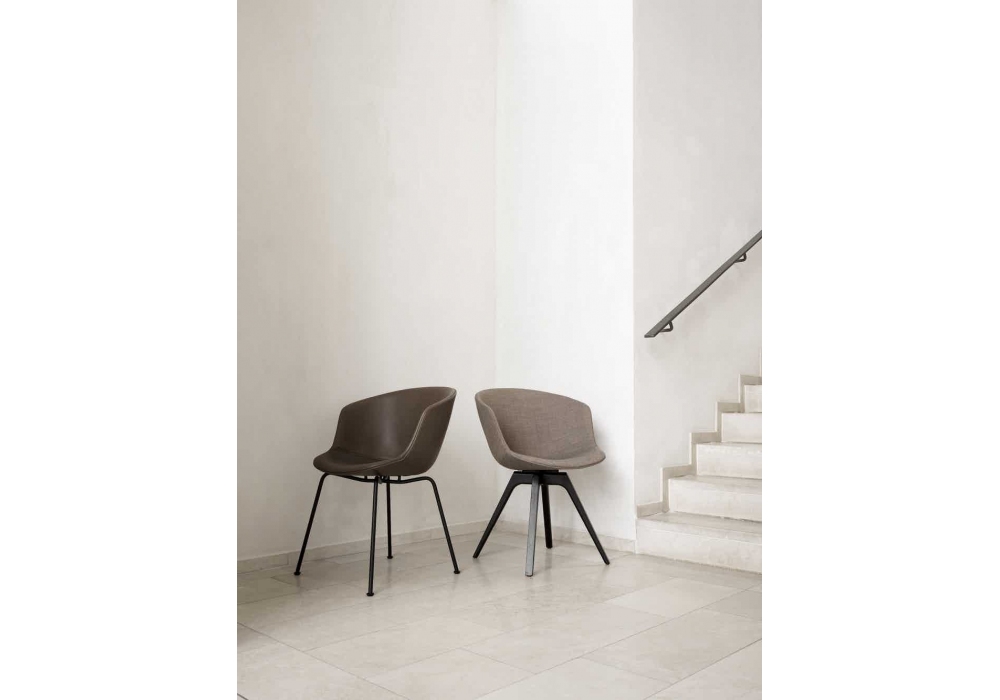 Mono firmata da 365 North per wendelbo è una sedia rivestita con gambe in acciaio verniciate a polvere nero e scocca in plastica o fibra di vetro. Rivestimento realizzato in pelle o tessuto.