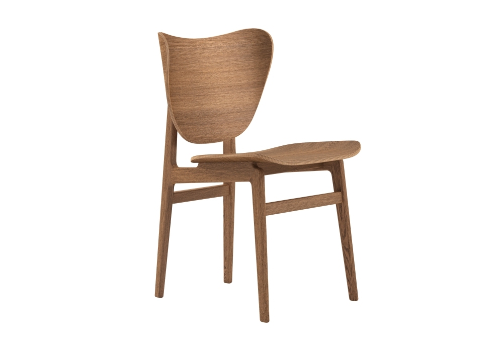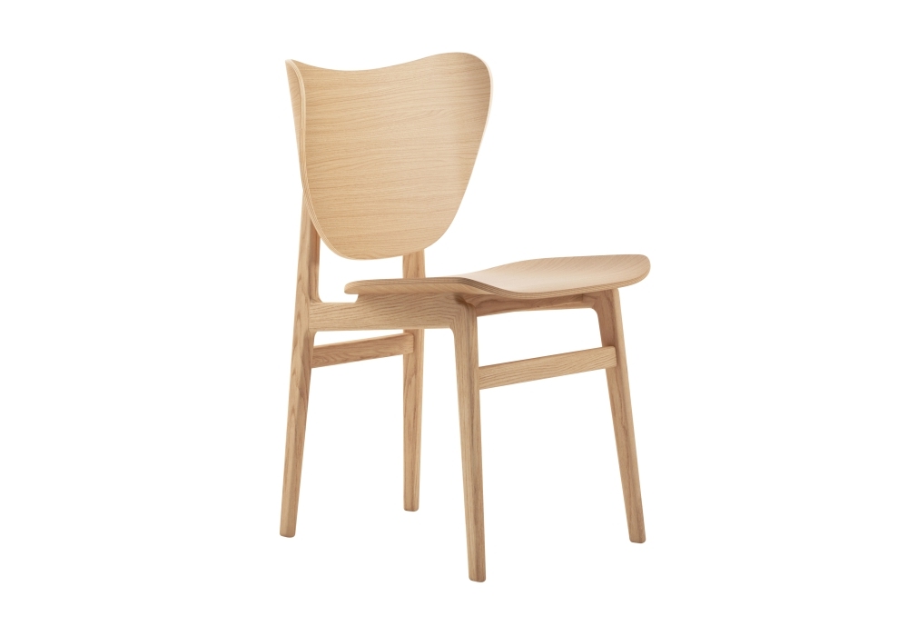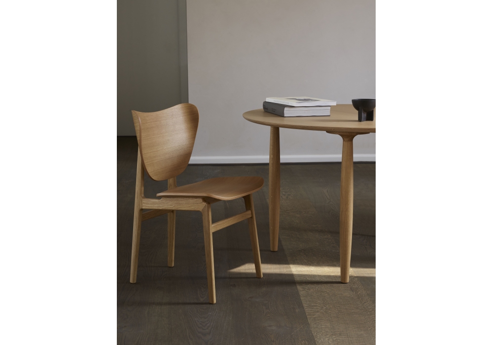 Elephant Dining firmata da Kristian Sofus Hansen e Tommy Hyldahl per Norr11 è una sedia con struttura in legno massello di rovere. La sedia è disponibile in diverse varianti di telaio: Naturale, tinto scuro e nero.
