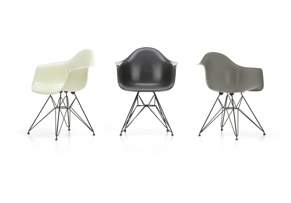 Eames Fiberglass Armchair DAR disegnata da Charles e Ray Eames per Vitra è una poltrona della collezione DAR con scocca realizzata in poliestere rinforzato in fibra di vetro disponibile in diverse finiture. Base con fili di acciaio con montanti incrociati in diverse finiture.