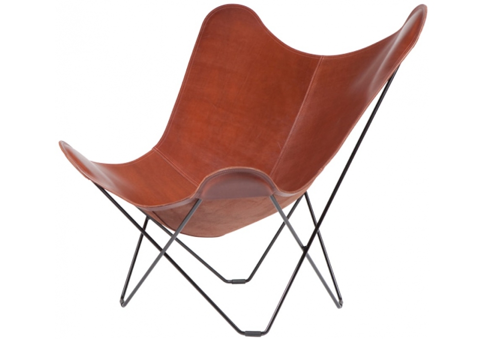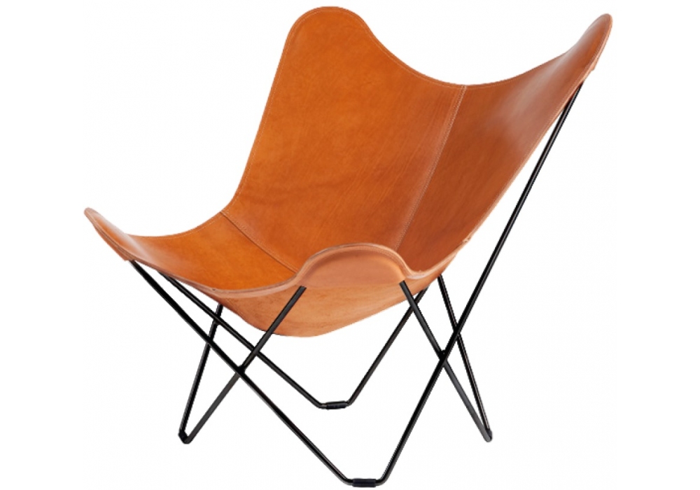 Pampa Mariposa firmata da Cuero Design è una sedia con struttura metallica nera e rivestimento in pelle. Disponibile in diverse finiture.