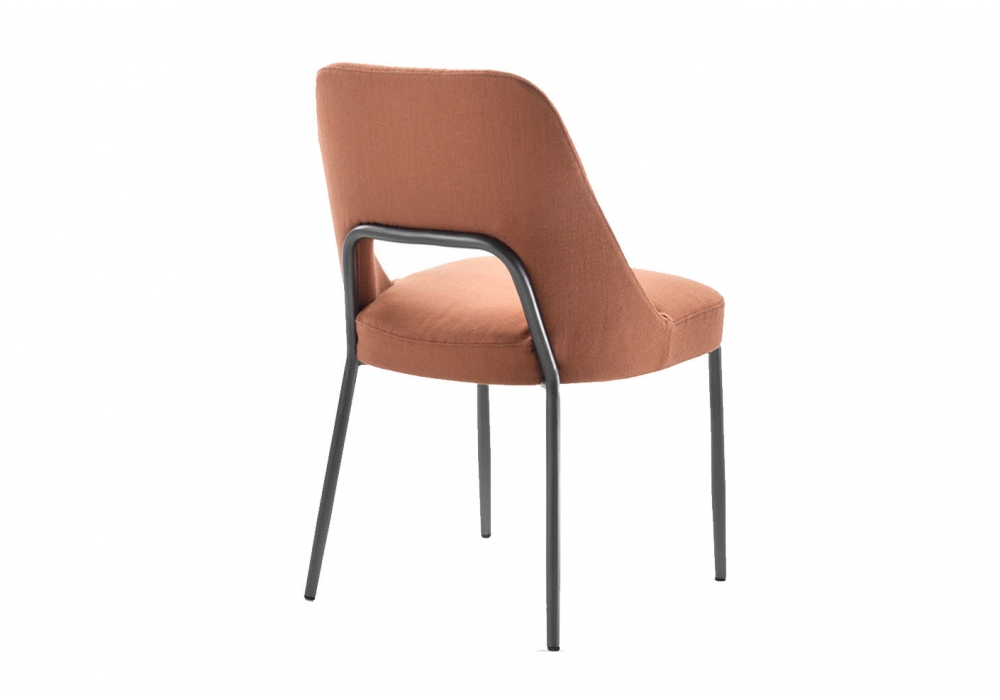 Joyce firmata da Design Center per Flexform è una sedia con gambe in metallo e rivestimento in diverse finiture di tessuto e pelle.
