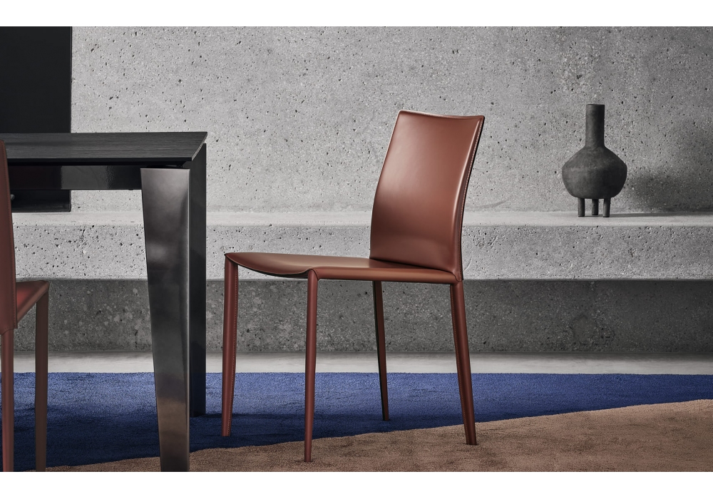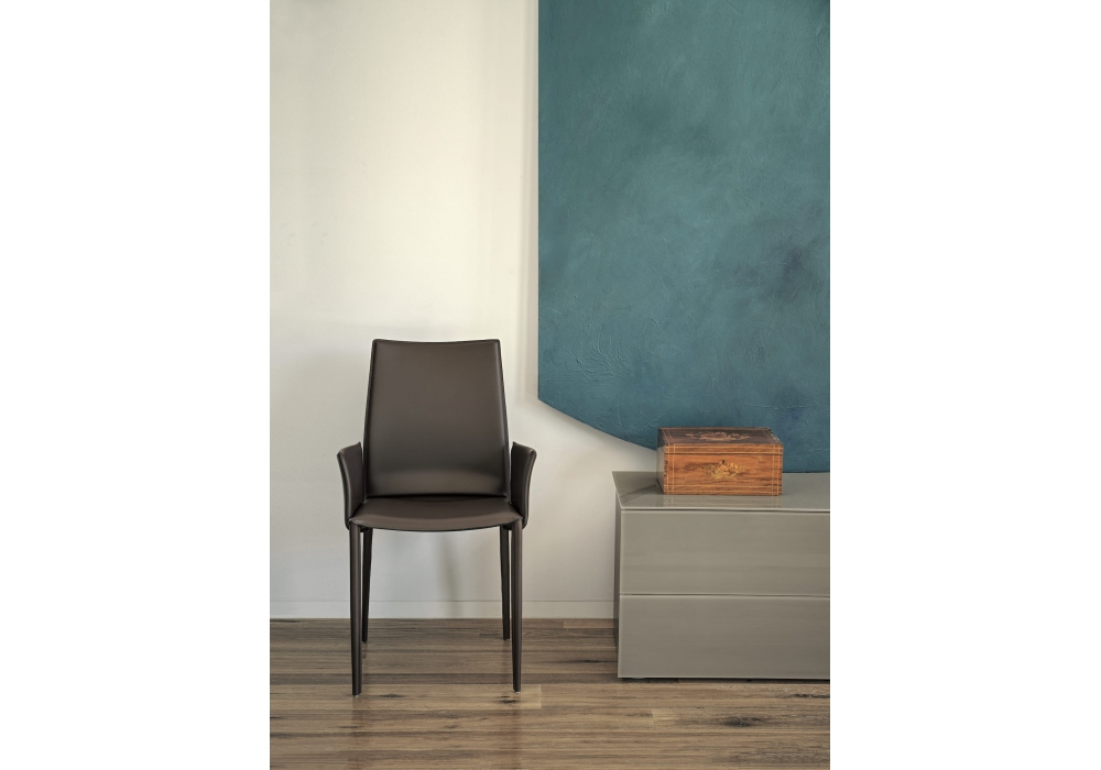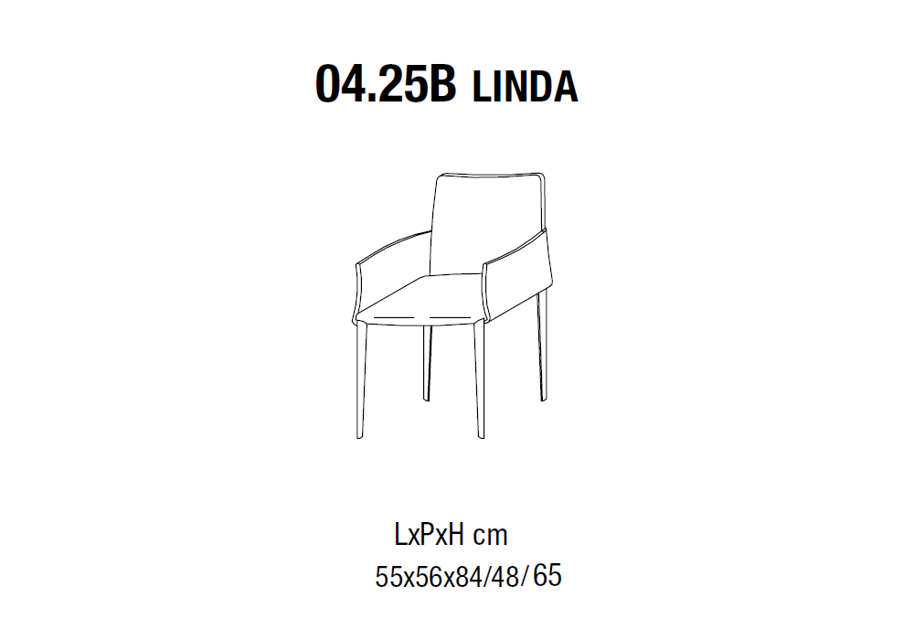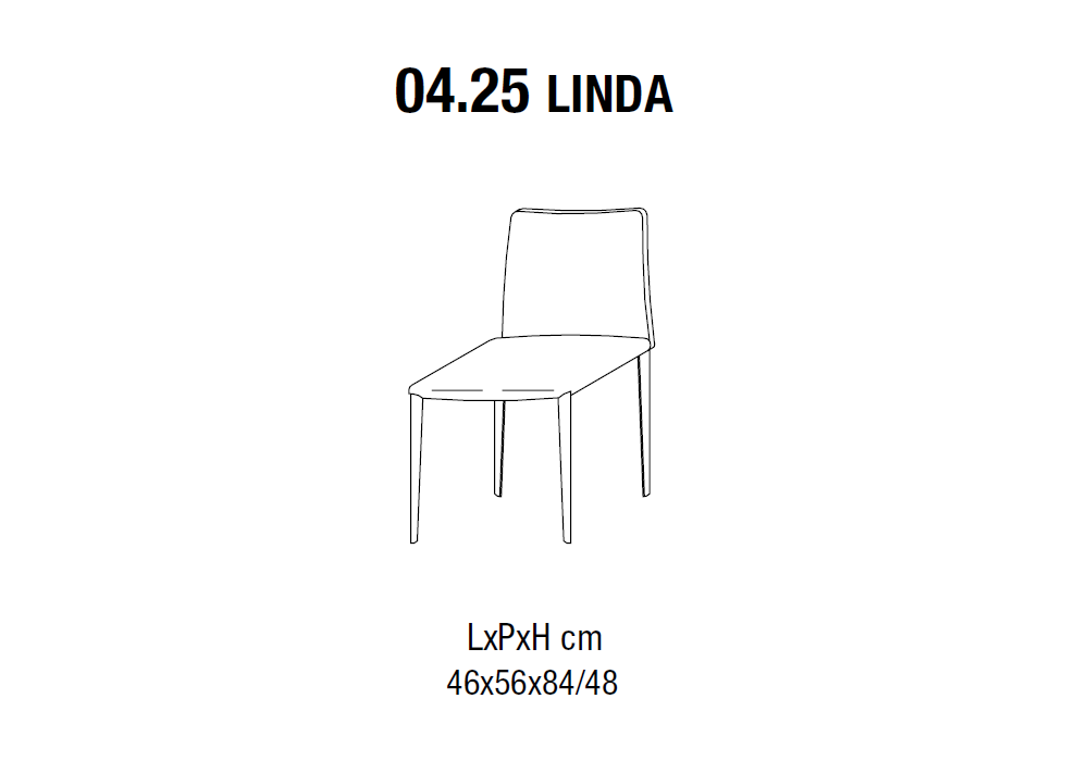 Linda firmata da Daniele Molteni per Bontempi è una sedia con struttura in acciaio completamente imbottita e rivestita. La sedia è disponibile con schienale alto o basso, con o senza braccioli, e anche in diversi materiali e finiture di rivestimento.