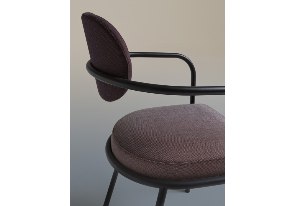 Ula firmata da Serena Confalinieri per My Home Collection è una sedia con struttura in acciaio tubolare verniciato. Seduta e schienale sono in gomma poliuretanica e fodera in fibra di poliestere. Il rivestimento è in tessuto mono o bicolore in differenti finiture.