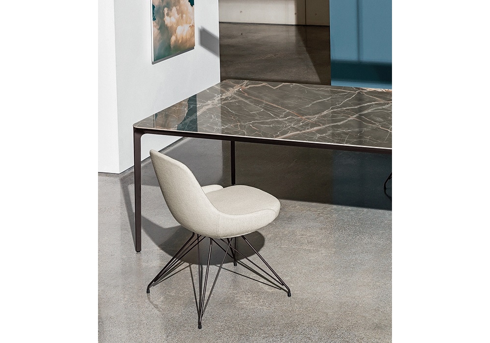 Cadira S firmata da Studio Sovet per Sovet è una sedia senza braccioli realizzata con struttura in metallo e rivestimento in pelle, tessuto o velluto. Disponibile in diverse finiture e in 2 versioni.