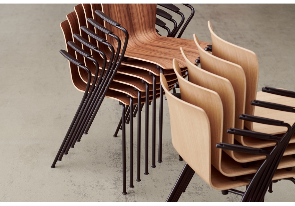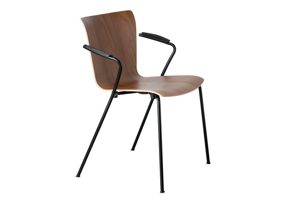 Vico Duo firmata da Vico Magistretti per Fritz Hansen è una sedia con braccioli realizzata con base a quattro gambe cromata o verniciato a polvere nera. Seduta e schienale in legno. Disponibile in diverse finiture.