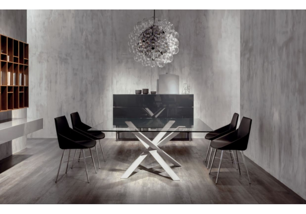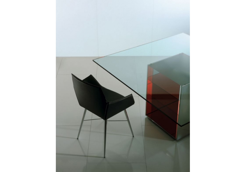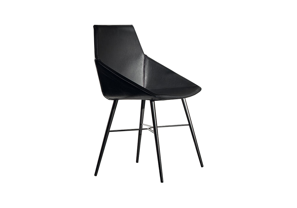 Seltz firmata da Jehs + Laub per Acerbis è una sedia con base in metallo cromato o brunito e completamente rivestita in pelle. Disponibile con o senza braccioli