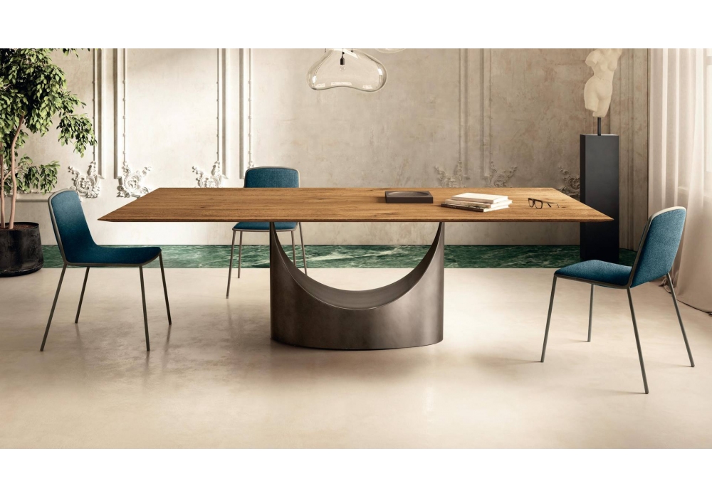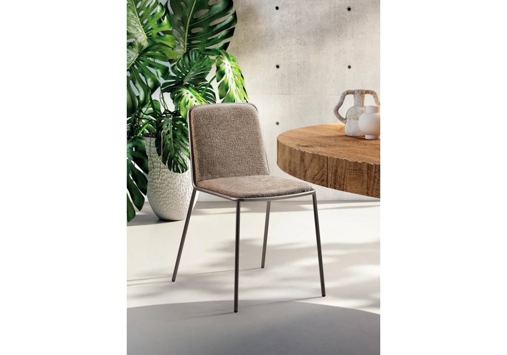 Peltra firmata da Daniele Lago è una sedia con gambe in acciaio verniciato e scocca rivestita in pelle o tessuto con possibilità di scegliere diverse finiture per la scocca posteriore e anteriore.