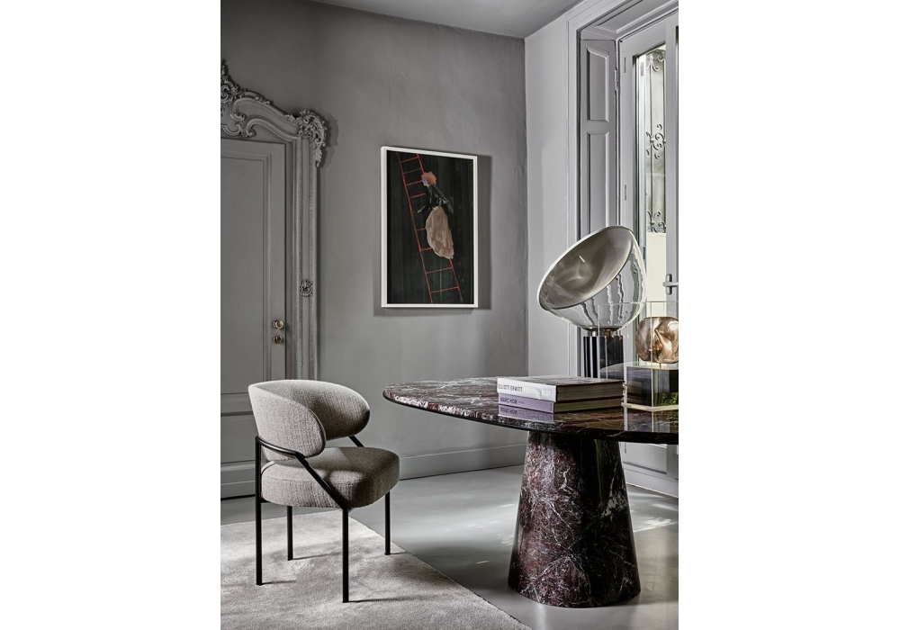 Isetta firmata da Andrea Parisio per Meridiani è una sedia con struttura tubolare in metallo verniciato opaco black.