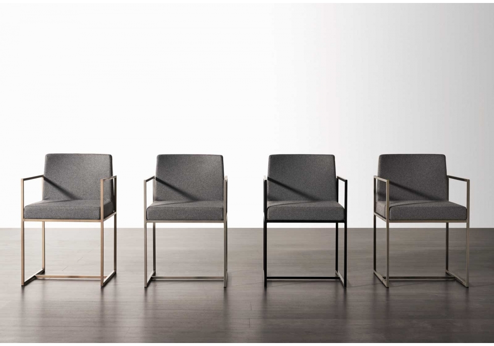 Rider firmata da Andrea Parisio per Meridiani è una sedia con imbottitura in poliuretano stampato con inserto in metallo. Basamento in metallo nelle seguenti finiture: metal, verniciato ottone bronzato e verniciato acciaio platinato. Piedino nero.