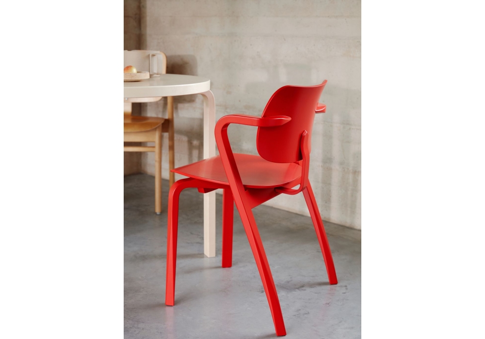 Aslak firmata da Ilmari Tapiovaara per Artek è una sedia realizzata con sedile e schienale in impiallacciato di faggio pressato e struttura in massello di faggio. Disponibile in diverse finiture. Pattini in feltro montati, pattini in plastica extra inclusi.