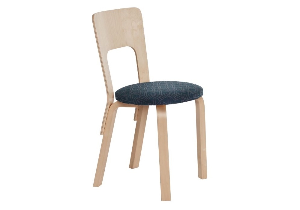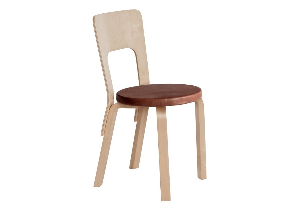 Chair 66 firmata da Alvar Aalto per Artek è una sedia realizzata con rivestimento del sedile in tessuto o pelle. Gambe e schienale laccati. Disponibile in diverse finiture.