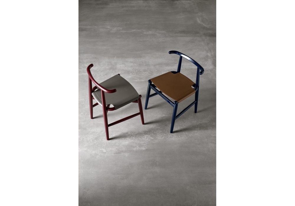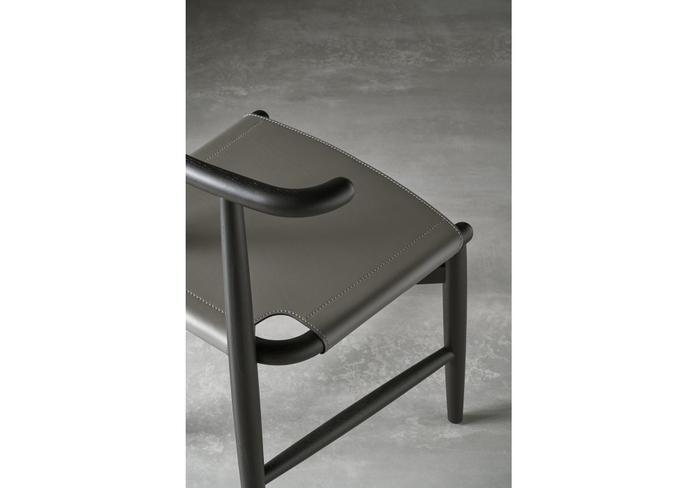 Emilia Kuoio firmata da Andrea Parisio per Meridiani è una sedia con seduta in cuoio e struttura in massello di frassino tinto o laccato. Piedini neri in plastica.