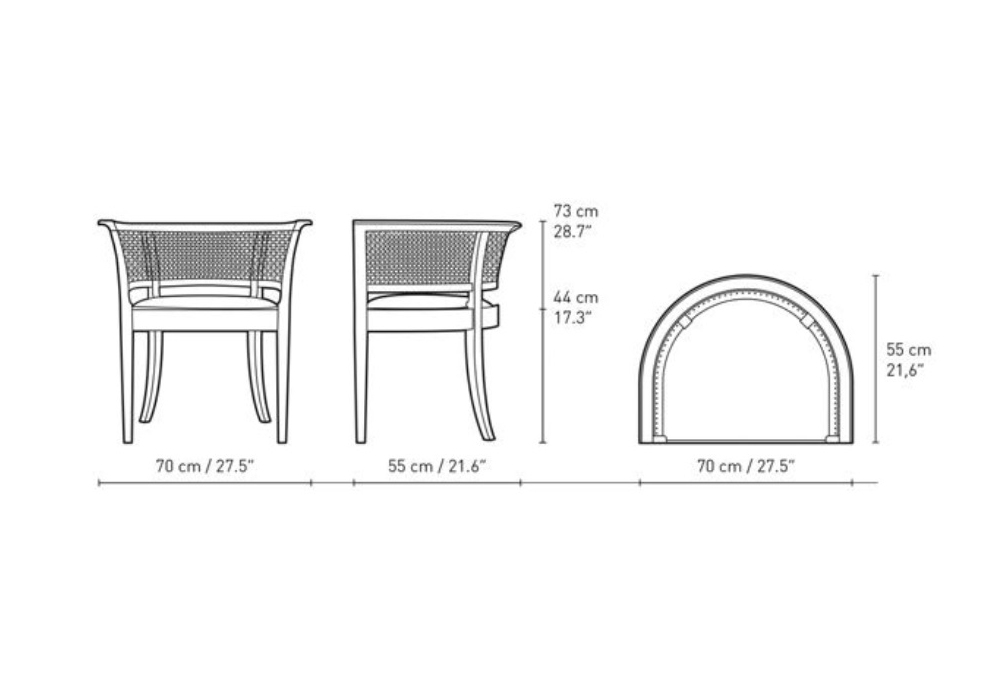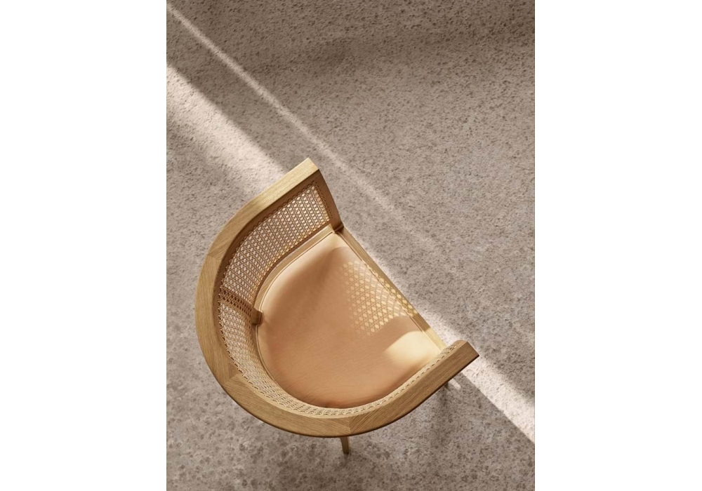KK96620 The Faaborg Chair firmata da Kaare Klint per Carl Hansen & Søn è una sedia con telaio in legno: rovere, noce o mogano disponibile in diverse finiture. Braccioli in paglia di Vienna intrecciata a mano. Rivestimento seduta disponibile in pelle.