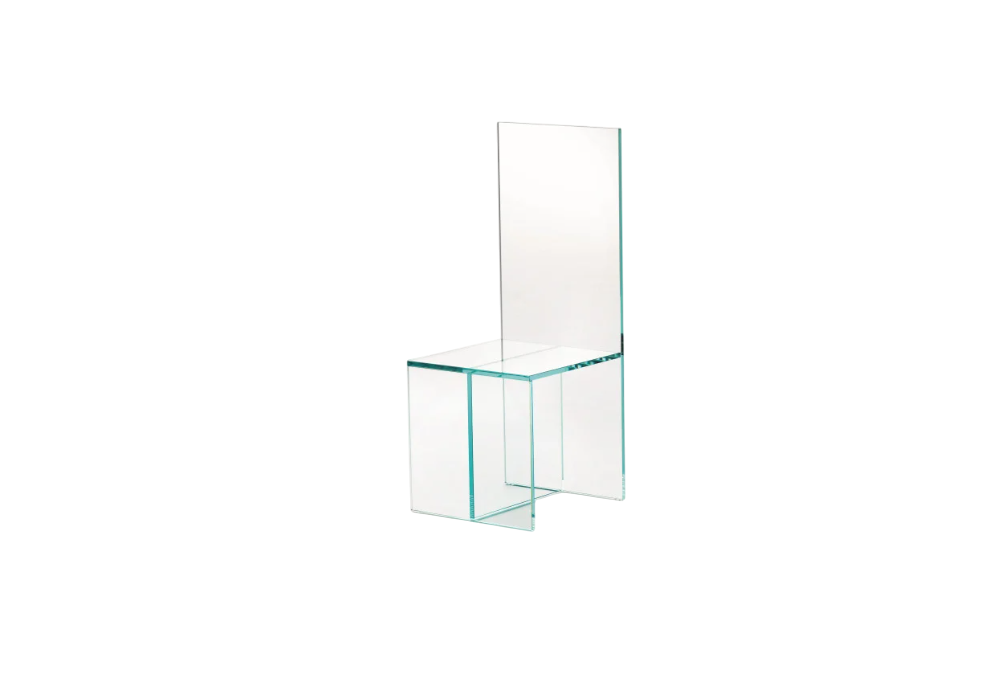 Merci Bob firmata da Elena Cutolo per Glas Italia è una sedia realizzata interamente in cristallo incollato, disponibile nelle finiture trasparente extralight, cristalli trasparenti colorati, cristalli diffusori colorati opachi e lucidi. La versione trasparente extralight è in cristallo 15 mm. temperato, mentre quella trasparente colorata è in cristallo stratificato 8+8 mm.