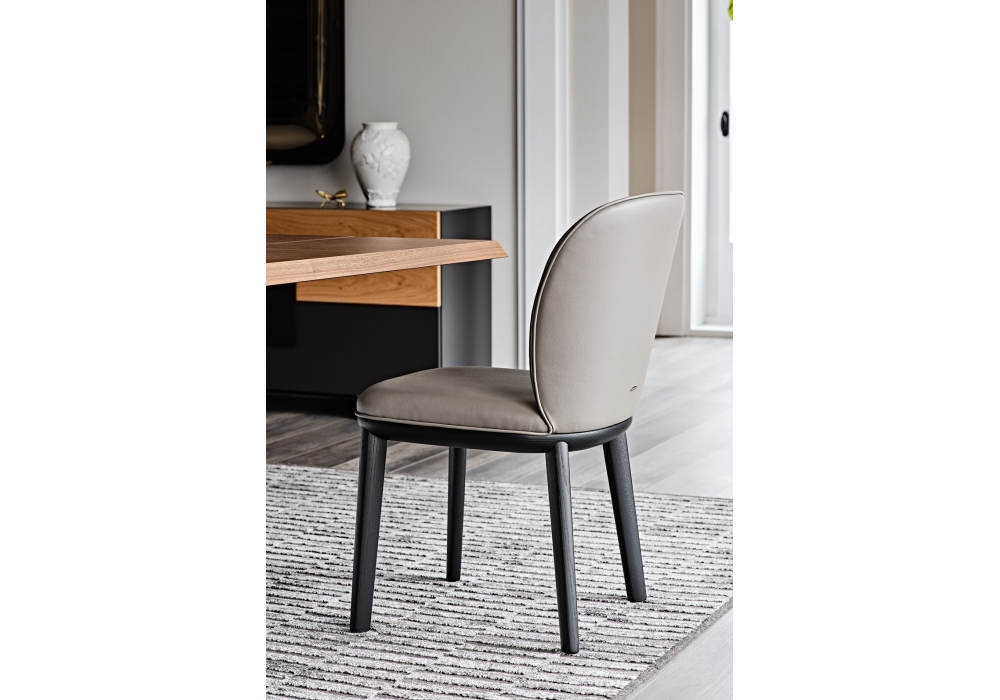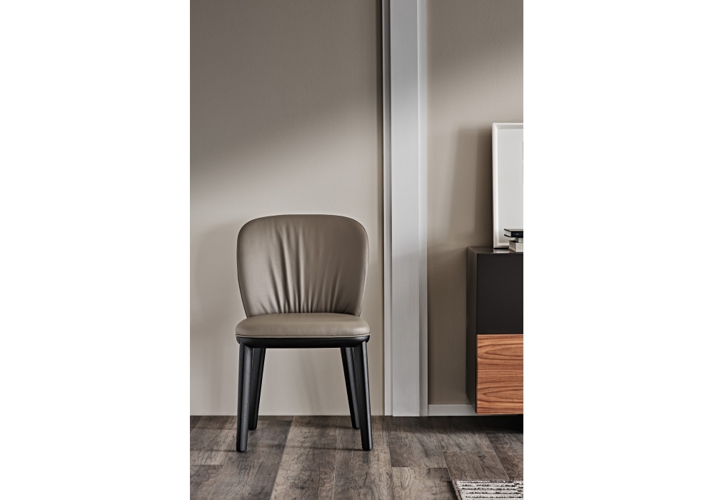 Chris firmata da Paolo cattelan per Cattelan Italia è una sedia con base in legno massello di frassino tinto. Rivestimento in tessuto, synthetic nubuck, micro nubuck, ecopelle o pelle.