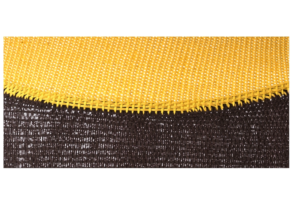 Arco firmata da Martino Gamper per Moroso è una sedia realizzata con base in acciaio verniciato e fili colorati di polietilene intrecciati a mano.