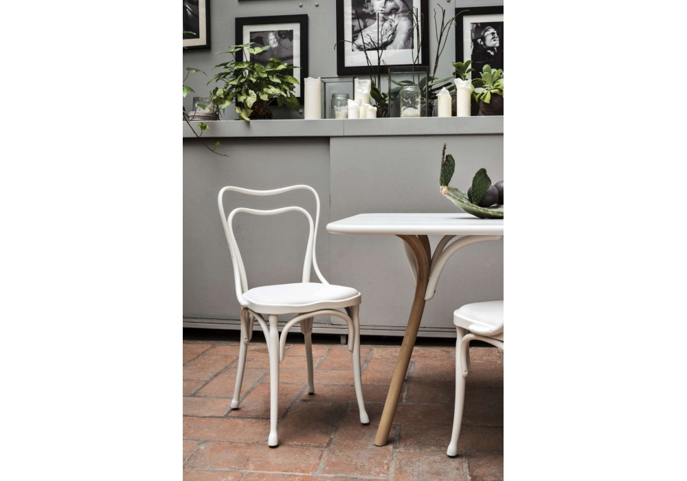 Loos Café Museum firmata da Adolf Loos per Gebrüder Thonet Vienna è una sedia con seduta imbottita, struttura in faggio curvato in diverse finiture. Rivestimento della seduta disponibile in tessuto o pelle.