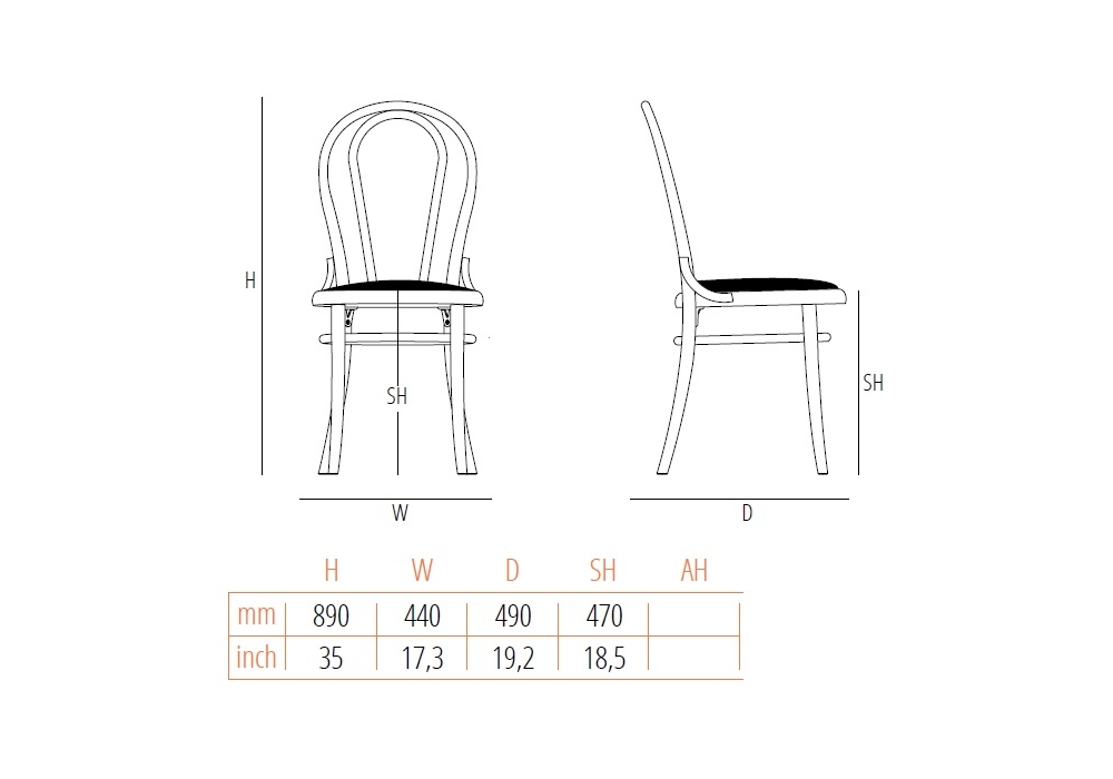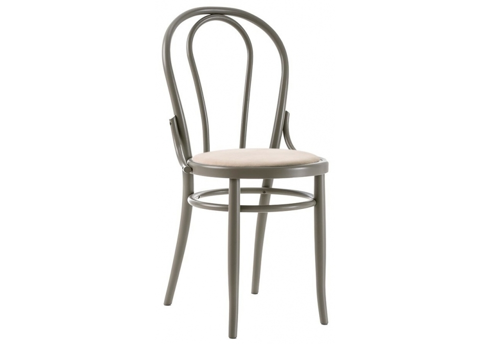 N. 18 firmata da Gebrüder Thonet Vienna è una sedia realizzata in faggio curvato, disponibile in diverse finiture. Seduta imbottita con rivestimento in tessuto o pelle.