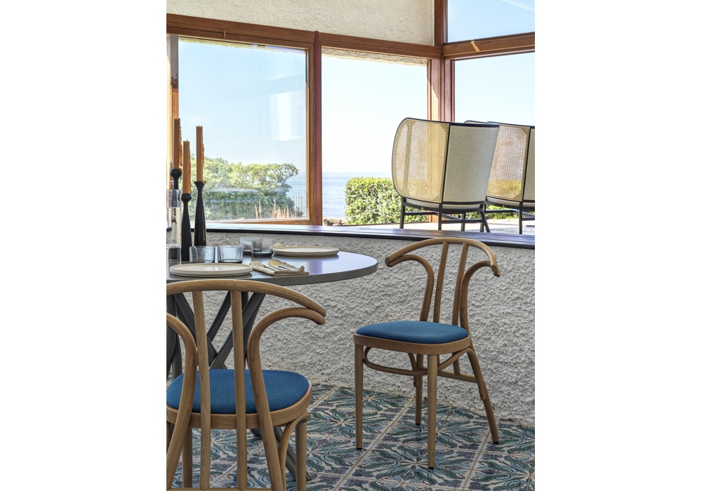 Radetzky firmata da Michele De Lucchi per Gebrüder Thonet Vienna è una sedia realizzata in faggio curvato, disponibile in diverse finiture. Seduta imbottita con rivestimento in tessuto o pelle.