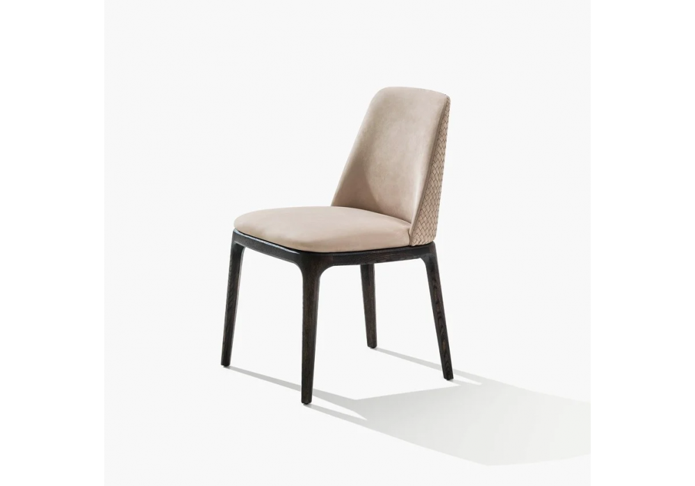 Grace firmata da Emmanuel Gallina per Poliform è una sedia realizzata con struttura in legno massello, schienale in poliuretano flessibile stampato a quote differenziate e rivestimento in tessuto o in pelle. Disponibile con scocca esterna in pelle intrecciata.