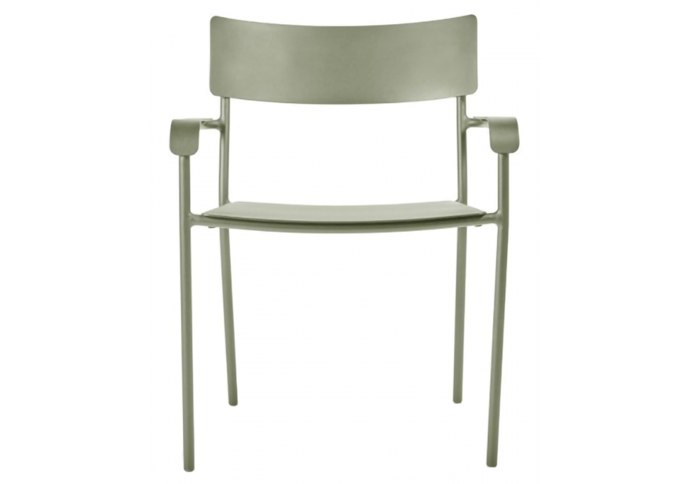 August firmato da Vincent Van Duysen per Serax è una sedia con braccioli, internamente concepita in alluminio verniciato a polveri in tre differenti finiture; nero, verde eucalipto o sabbia. Schienale e seduta sono leggermente più larghi di una classica seduta per assicurare un confort ottimale e possono essere utilizzate sia come sedia da interno che da esterno. August è disponibile in due differenti versioni, con o senza braccioli.