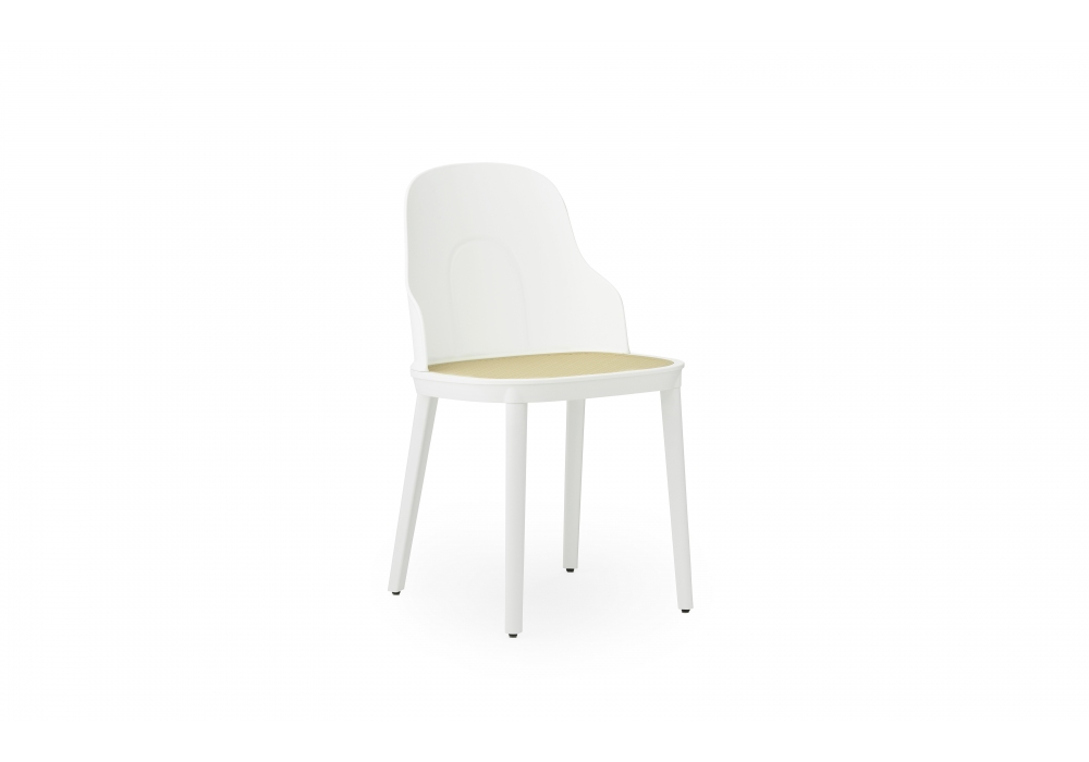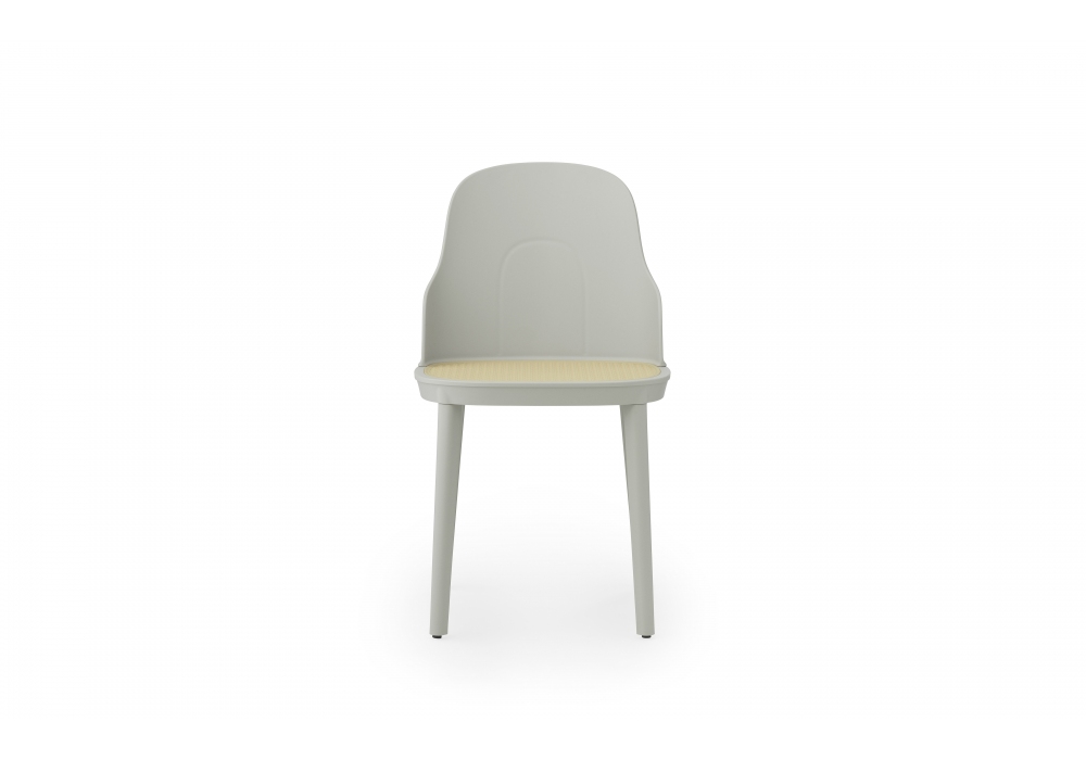 Allez, firmata da Simon Legald per Normann Copenhagen, è una sedia, interamente strutturata in materiale plastico nelle finiture; grigio caldo, grigio, bianco, nero o park green. Allez è disponibile in due differenti versioni, con seduta in materiale plastico dello stessa finitura della struttura, o con seduta in vimini stampato di colore avorio.