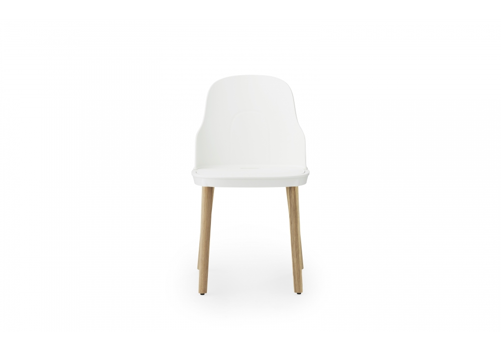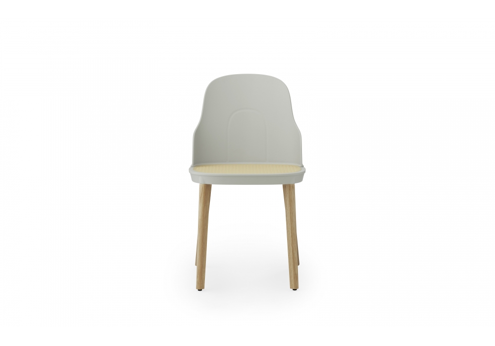 Allez, firmata da Simon Legald per Normann Copenhagen, è una sedia, strutturata in polipropilene in combinazione con il rovere, nelle finiture; grigio caldo, grigio, bianco, nero o park green. Allez è disponibile in due differenti versioni, con seduta in materiale plastico dello stessa finitura della struttura, o con seduta in vimini stampato di colore avorio.