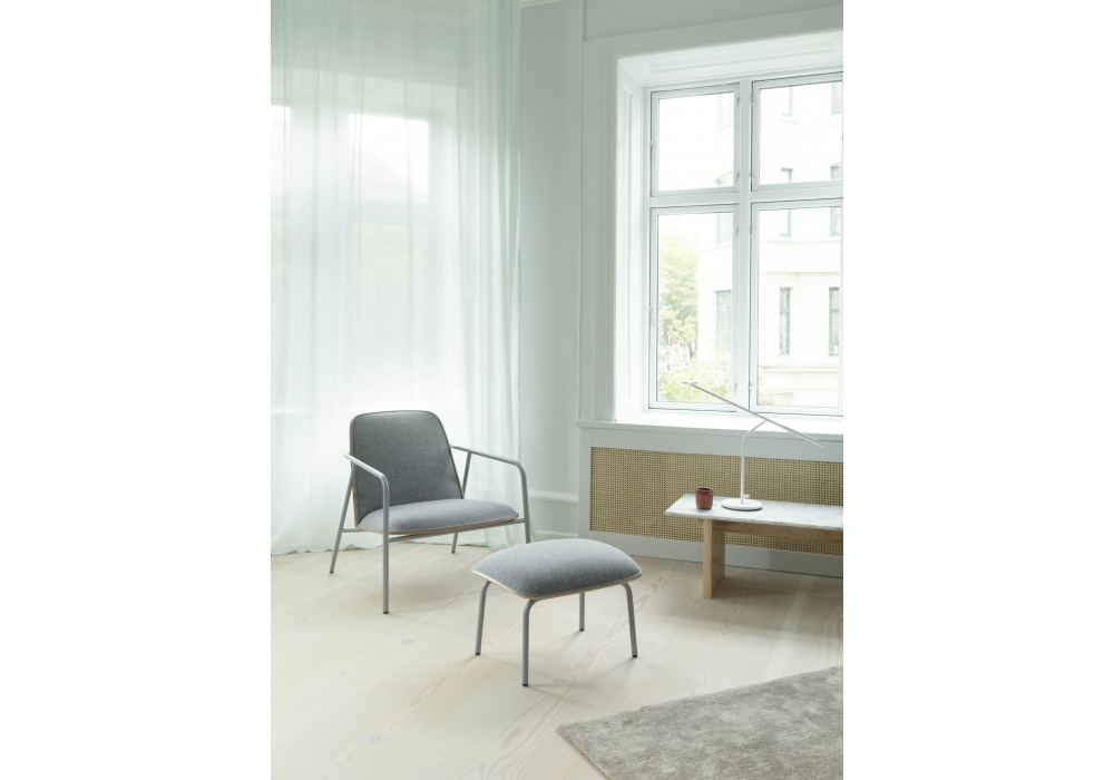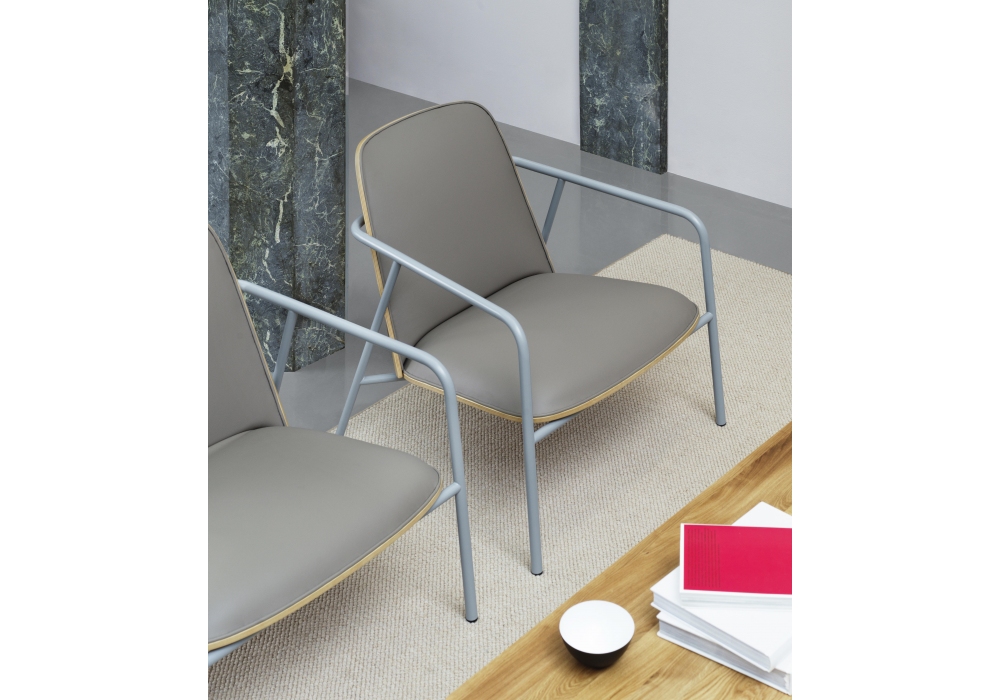 Pad, firmata da Simon Legald per Normann Copenhagen è una sedi, con struttura tubolare in acciaio verniciato a polveri di colore nero o grigio. La seduta e lo schienale sono in legno, nelle finiture nero o legno naturale, imbottiti in schiuma PU rifoderata di tessuto o pelle in differenti cromie.