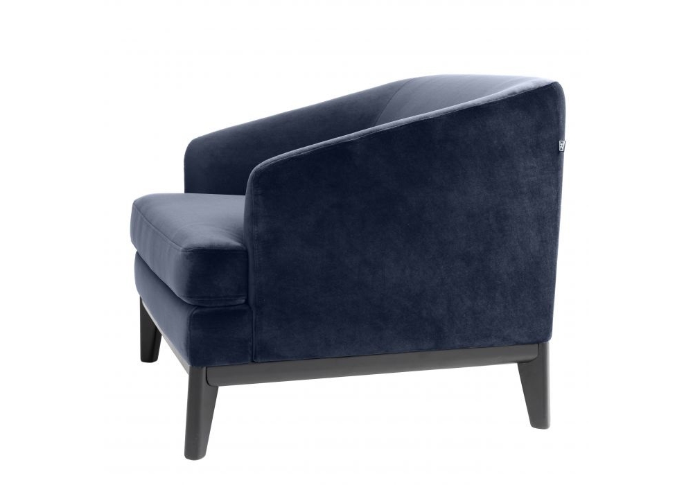 Chair Monterey firmata da Eichholtz è una sedia con braccioli inclinati e rivestimento in velluto Savona blu mezzanotte.