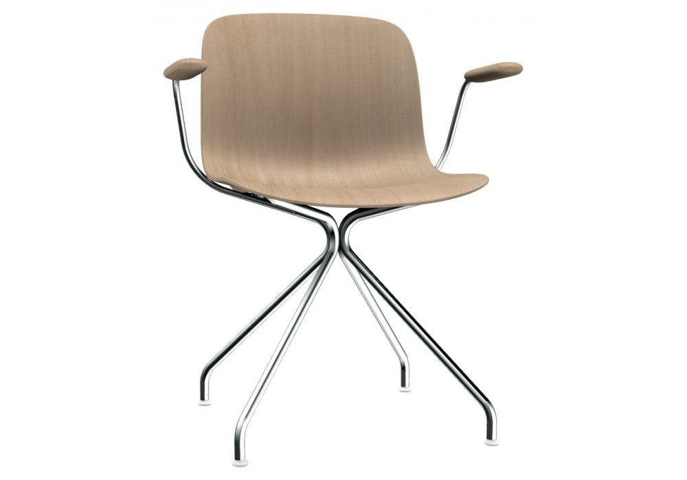 Troy 4 Star Beech firmata da Marcel Wanders per Magis è una sedia su 4 razze con sedile e braccioli in multistrato di faggio, struttura in tubo di acciaio cromato o verniciato. Disponibile in diverse finiture.