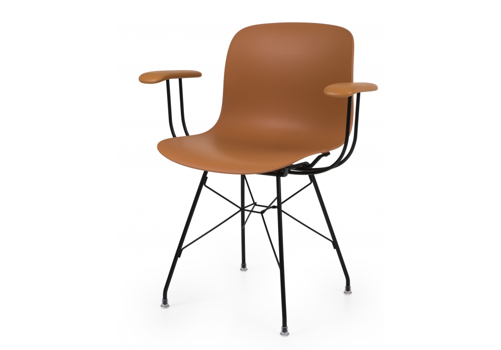 Troy Wireframe firmata da Marcel Wanders per Magis è una sedia con braccioli e sedile in polipropilene, in diversi colori. Struttura in tondino di acciaio dorato, ramato o verniciato.